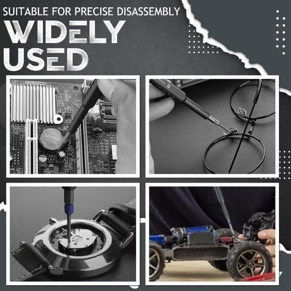 This screwdriver set has 28* conventional and precision bits, 1* screwdriver, 1* tweezers, 1* pry bar. The upgraded extended drill bit is 10mm longer than the ordinary one, which is convenient for disassembly and assembly of deep screws.